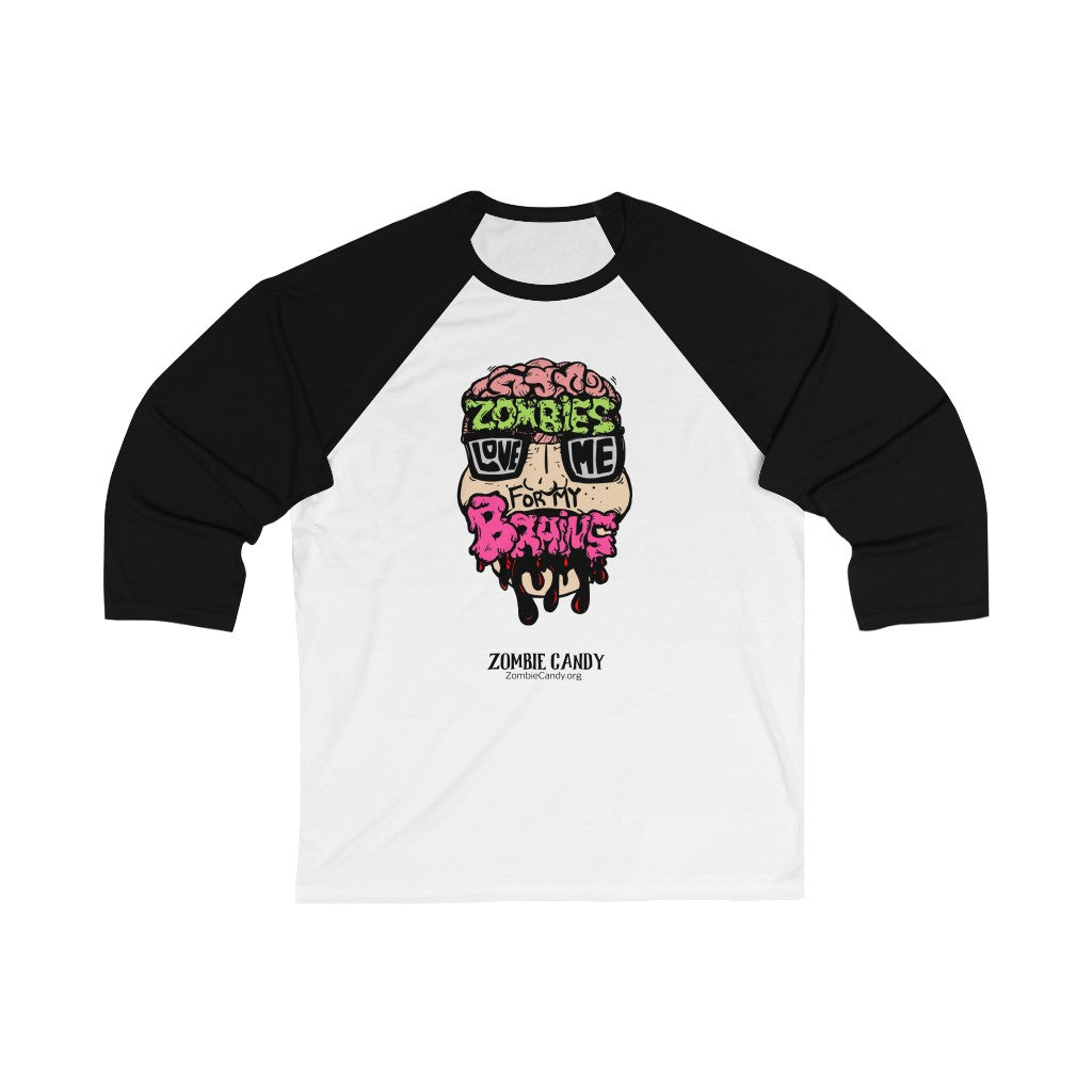 Zombies Love Me For My Brains Unisex 3/4 Sleeve Baseball Tee